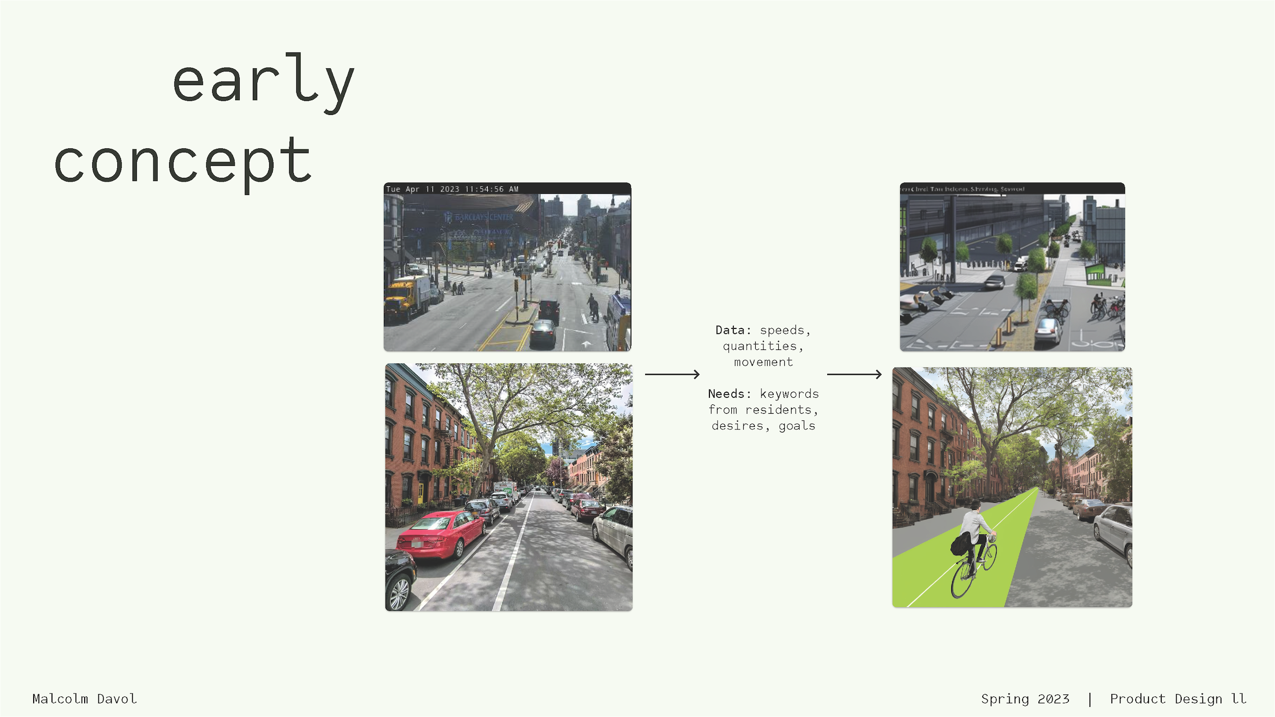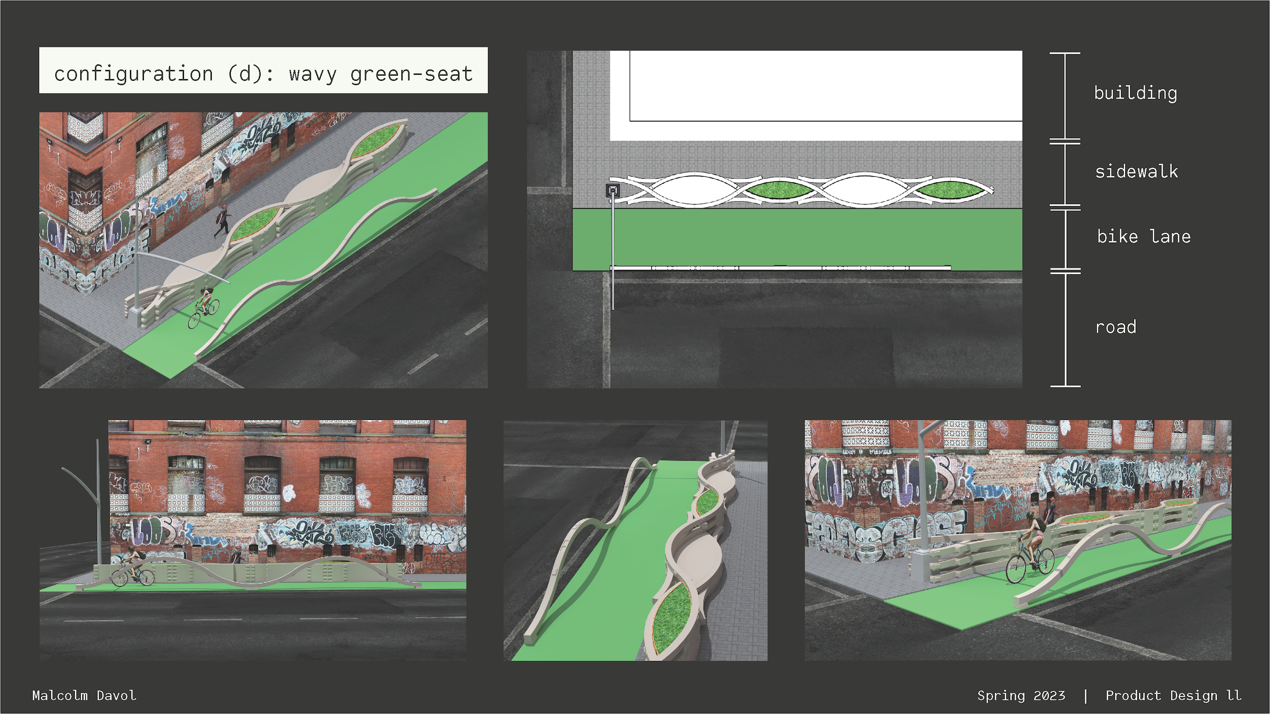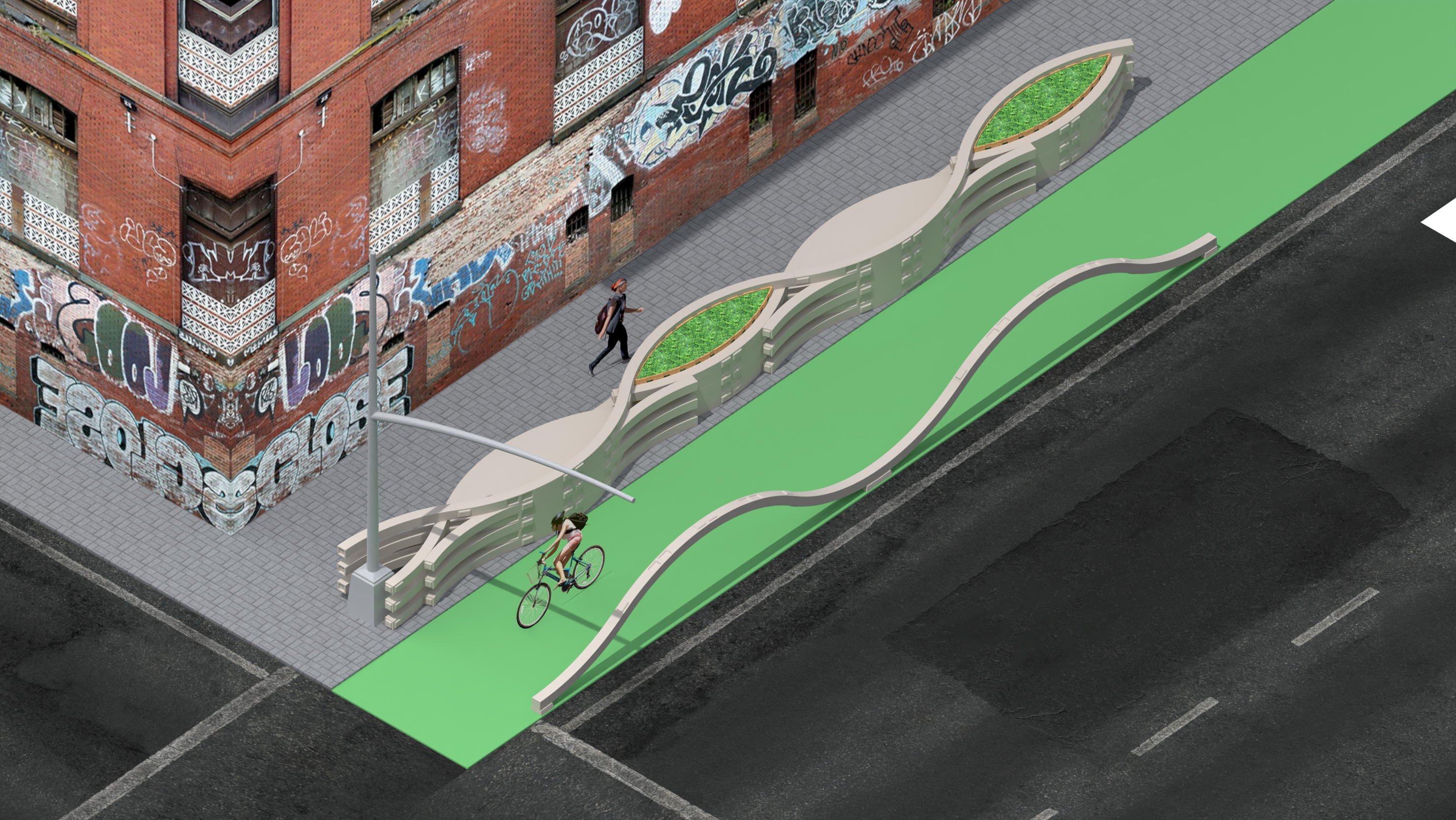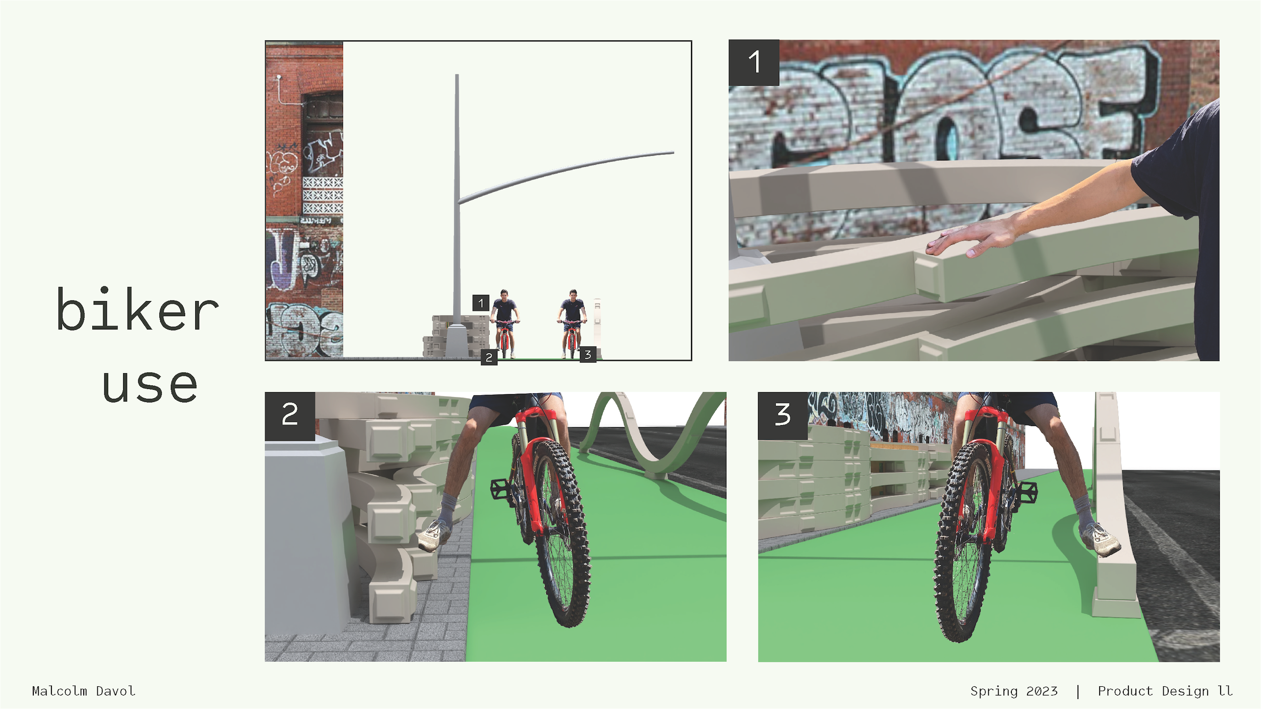 I created a concept and a paper prototype for a modular street dividing system to ensure the safety and comfort of pedestrians, cyclists, and drivers on urban streets. This project explored speed, movement, sound, division, and visibility, and it drew on research, traffic data, and personal experience.