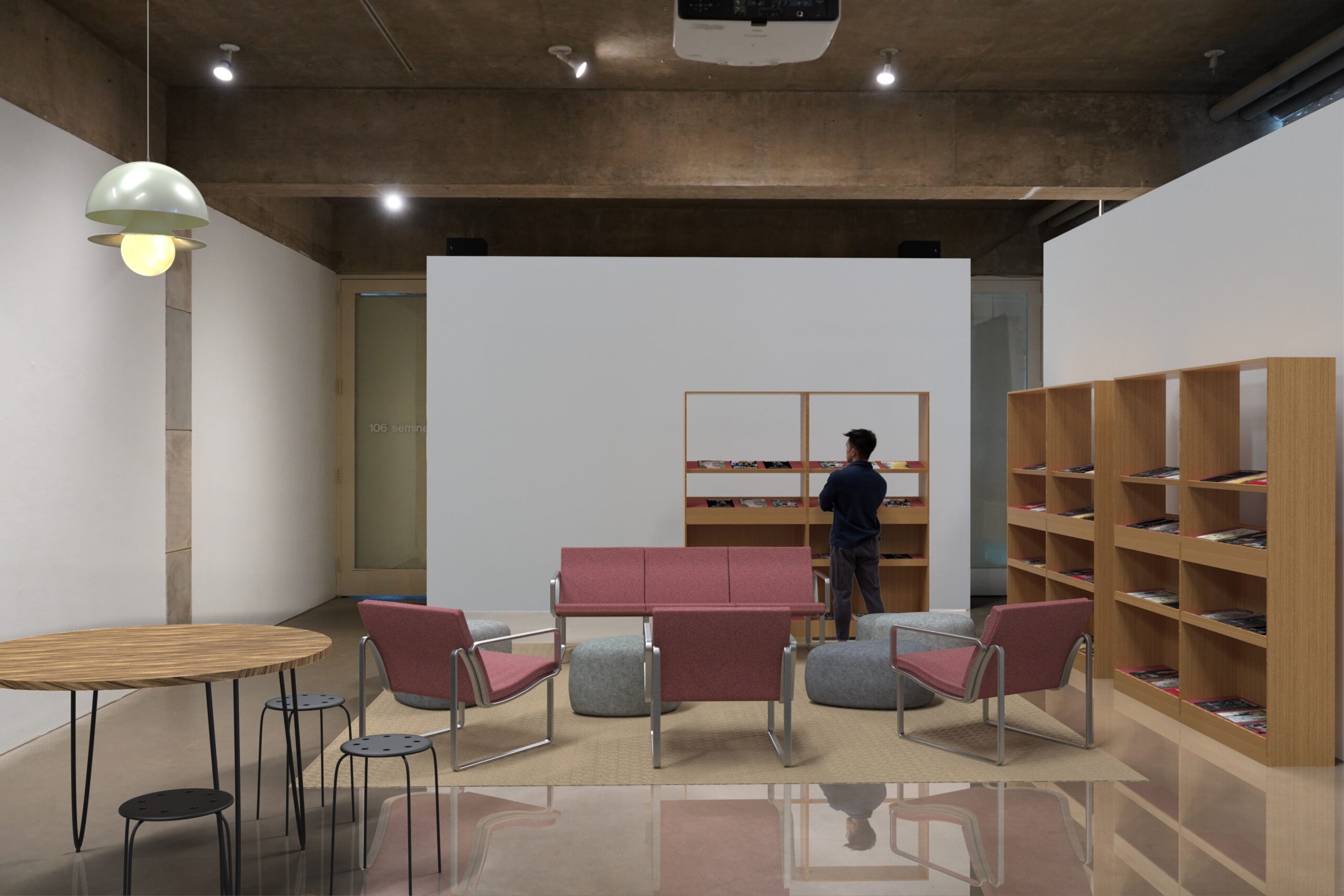 Hired by Rosemary Lennox of the Wesleyan Center for the Arts to render and composite images for a flex space in the Zilkha South Gallery. I was provided a rough layout and product images, and I returned two rounds of renderings for testing multiple furniture options.
